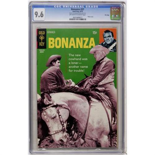 <B>Bonanza #37 File Copy (Gold Key, 1970) CGC NM+ 9.6 Off-white to white pages.</B></I> Photo cover. CGC notes, "From the Random House Archives." Overstreet 2007 NM- 9.2 value = $80. CGC census 9/07: 1 in 9.6, none higher.<BR><BR><b>Shipping:</b> Comics - Slabbed (certified) (<a target="_blank" href="http://www.heritageauctions.com/common/shipping.php">view shipping information</a>)