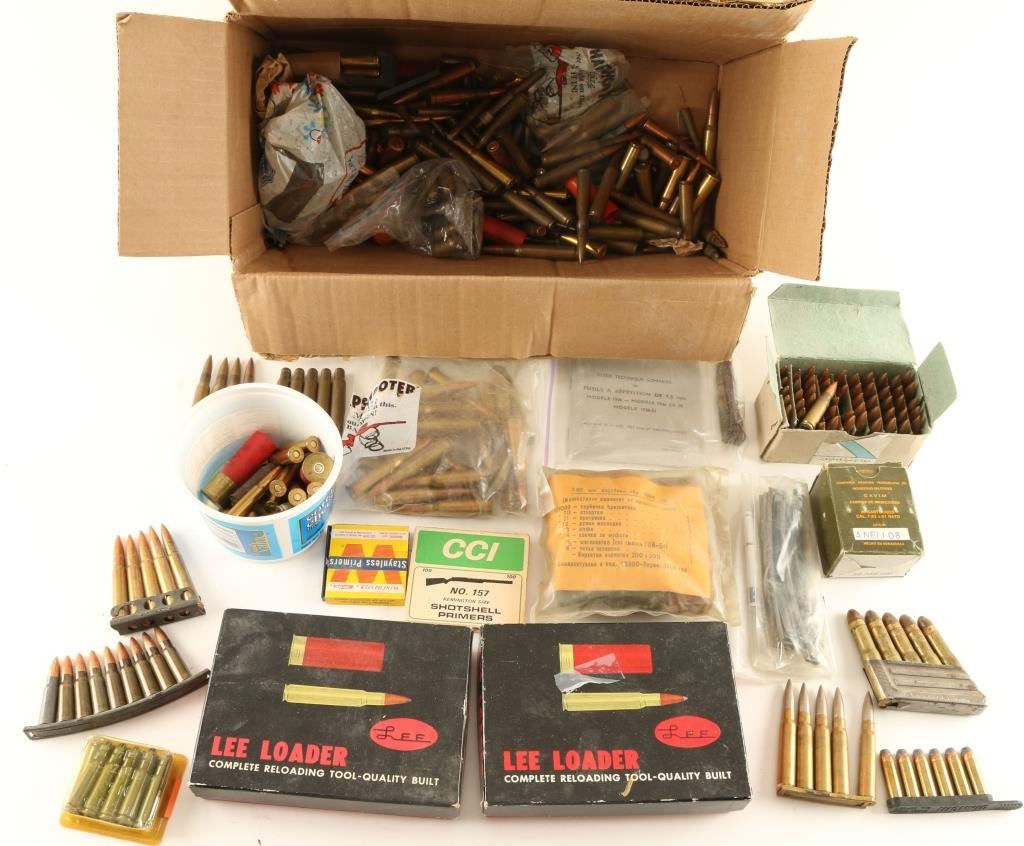 Includes multiple rounds of various caliber including 7.62 x 51, 7.62 x 39, and .308. Also includes 2 Reloading Tool Kits, primers, MIC attachment and more.