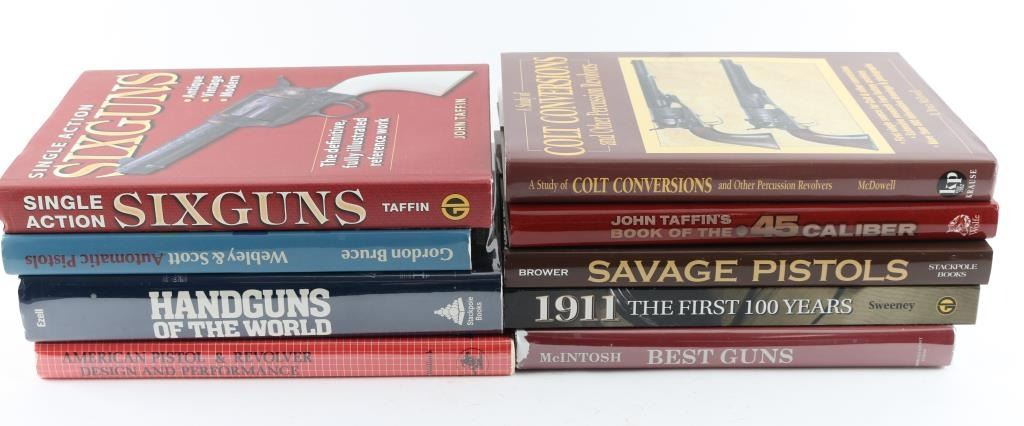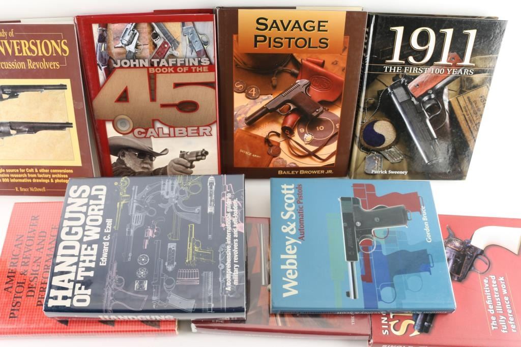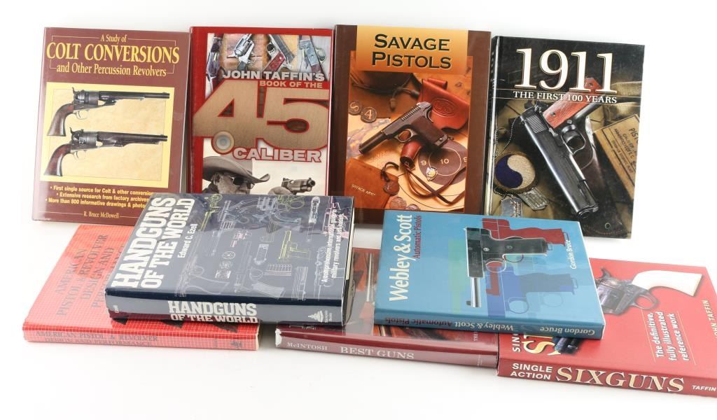 1) "Single Action Six Guns" 2) John Taffin's Book of the .45 Caliber" 3) "Best Guns" by Michael McIntosh 4) "A Study of Colt Conversions and Other Percussion Revolvers" 5) "American Pistol & Revolver Design and Performance" 6) "Savage Pistols" 7) "Handguns of the World, a comprehensive international guide to military revolvers and self-loaders" 7) 1911 The First 100 Years" 8) "Webley & Scott Automatic Pistols. All very Nice.