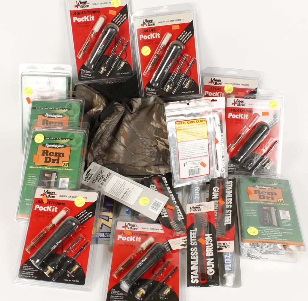 Including Remington Dri, Clean Bore handgun cleaning kit, Flitz Metal Polish and Fiberglass Cleaner