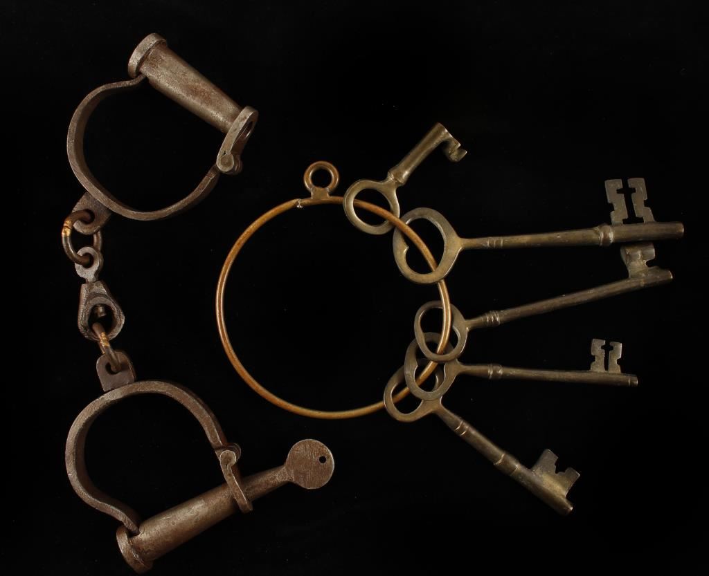 Including; 6 reproduction badges, handcuff set, jailer's skeleton keys, repro and some original stock certificates. Great for Western display!