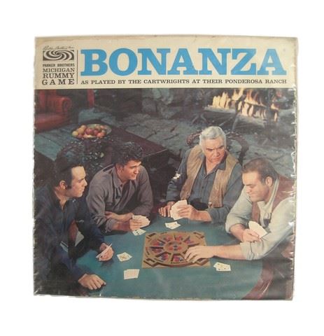 Bonanza TV Show Photo Cover Michigan Rummy Parker Bothers Board Game 1964 As Played by The Cartwrights at Their Ponderosa Ranch - Rare