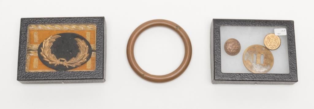 Bonanza lot consisting of framed photograph to the tenets epaulets age unknown buttons and various ephemera 5 items total. Est.: $100-$300.
