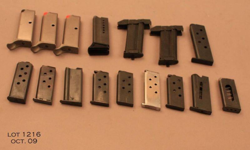 Bonanza lot of 16 misc. small frame pistol magazines including 3 AMT Back-UP .380 mags, seven .25 cal., mags including Colt and S & W and 6 unmarked. Est.: $200-$250.