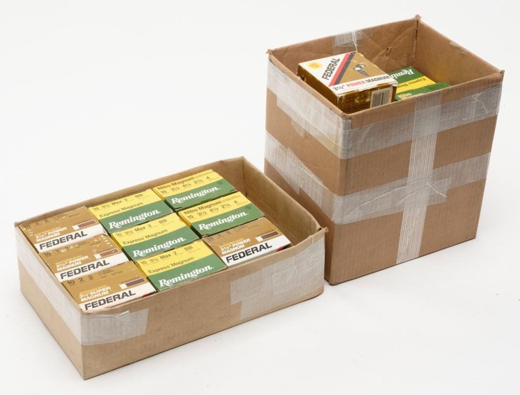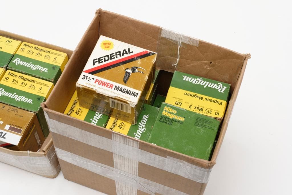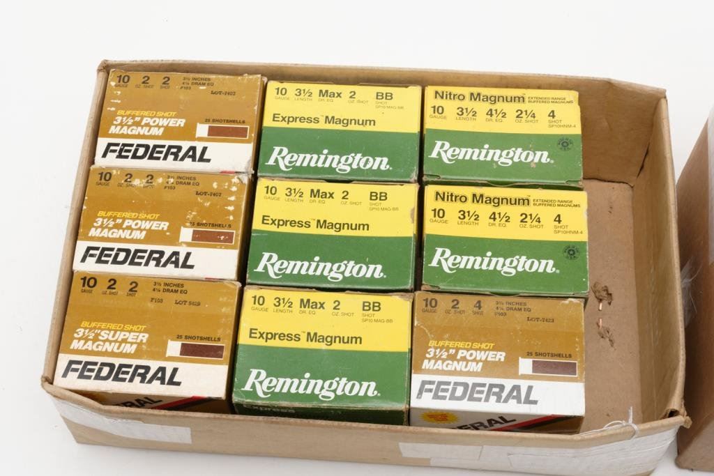 Bonanza lot of 22 boxes of 10 gauge shotgun ammunition, several makers but mostly Remington. Est.: $200-$400.