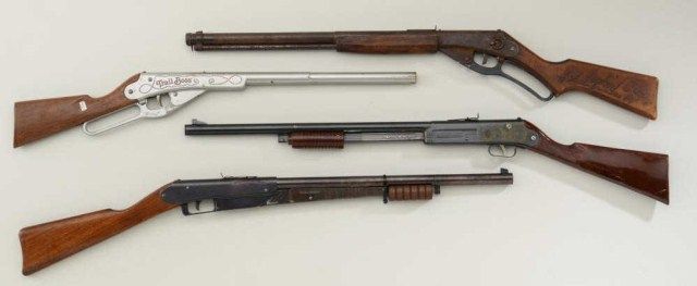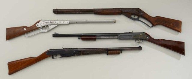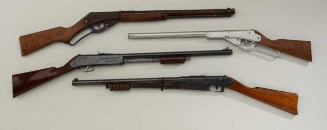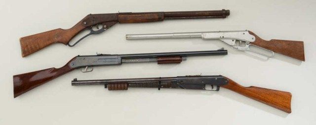 Bonanza lot of 7 BB rifles, 1 Webley BB pistol and a Daisy scope including 5 Daisy rifles, various models, 1 Daisy Super Scope model lever action with scope and 1 Daisy Scout model in its factory cardboard box; all 7 ranging in age and in condition; the Webley is overall very good and the Daisy scope is also very good with clear optics. Est.: $100-$200.