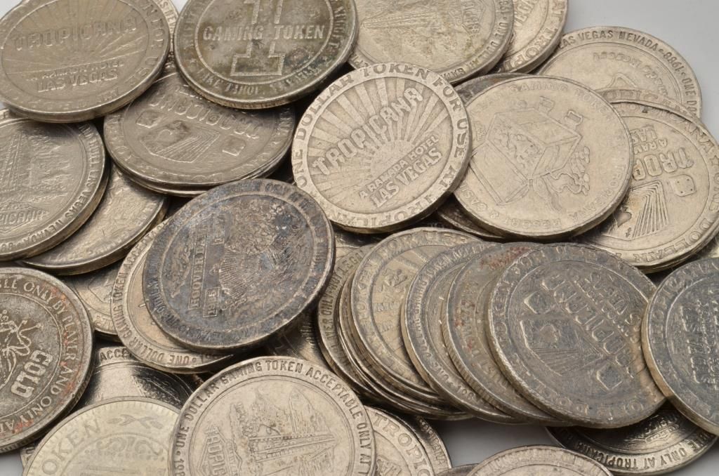 Bonanza lot of approx. 100 $1 misc. casino metal slot machine tokens in various conditions. Est.: $100-$150.