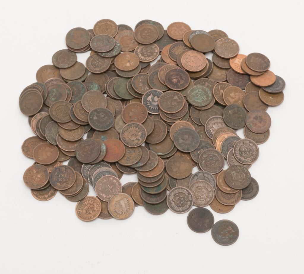 Bonanza lot of approx. 250 Indian Head Cents, good selection of dates, various conditions; a great little hoard! Est.: $225-$325.