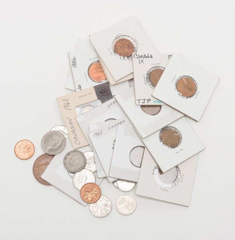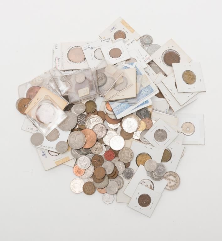 Bonanza lot of misc. foreign coins including Australian, Canadian, Ceylon, Mexican, French, Barbados, Hong Kong, East Caribbean States, Rhodesia, etc.; a lifelong collection! Est.: $100-$200.