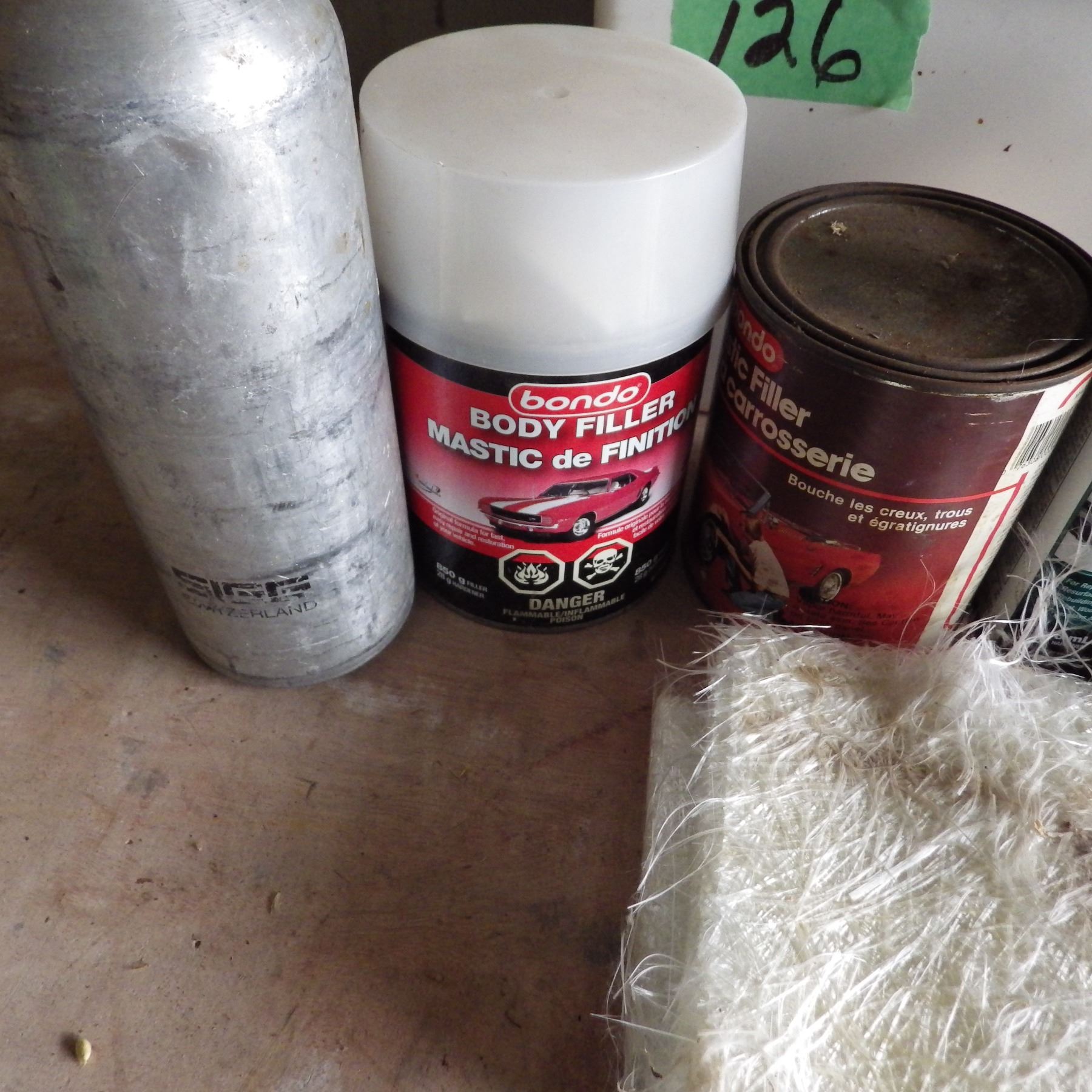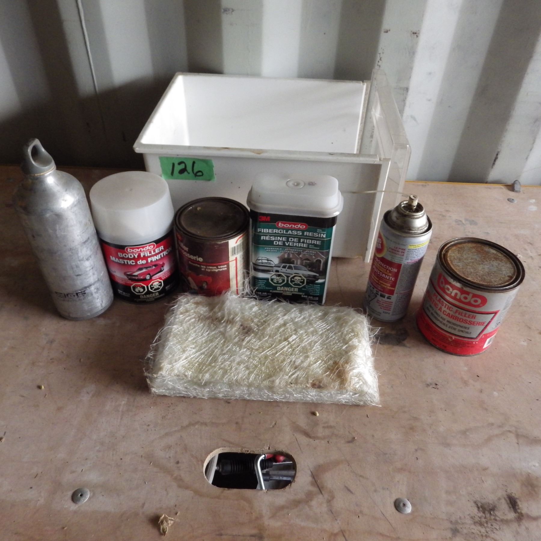 Bondo body filler and fiberglass etc - As is  - stored in sea container for a couple of years