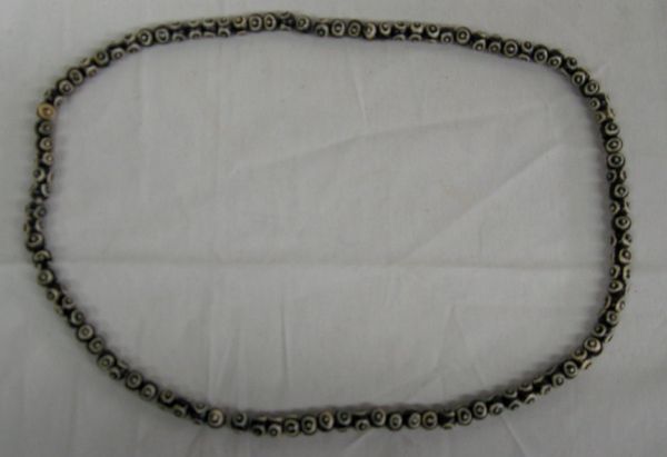 Bone Beaded Necklace Evil Eye Pattern. 36.5'' end to end. Shade of brown, over the head.