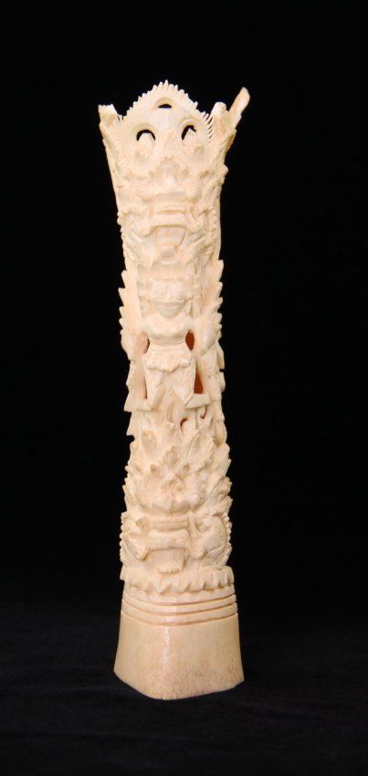 Bone Carving. Condition Report: A small piece of the top is broken. (Size: See last photo for measurement.)(Size: See last photo for measurement.) Photos are part of the description representing the condition report. Pangaea Auctions urges Bidder's to view all attached photos.