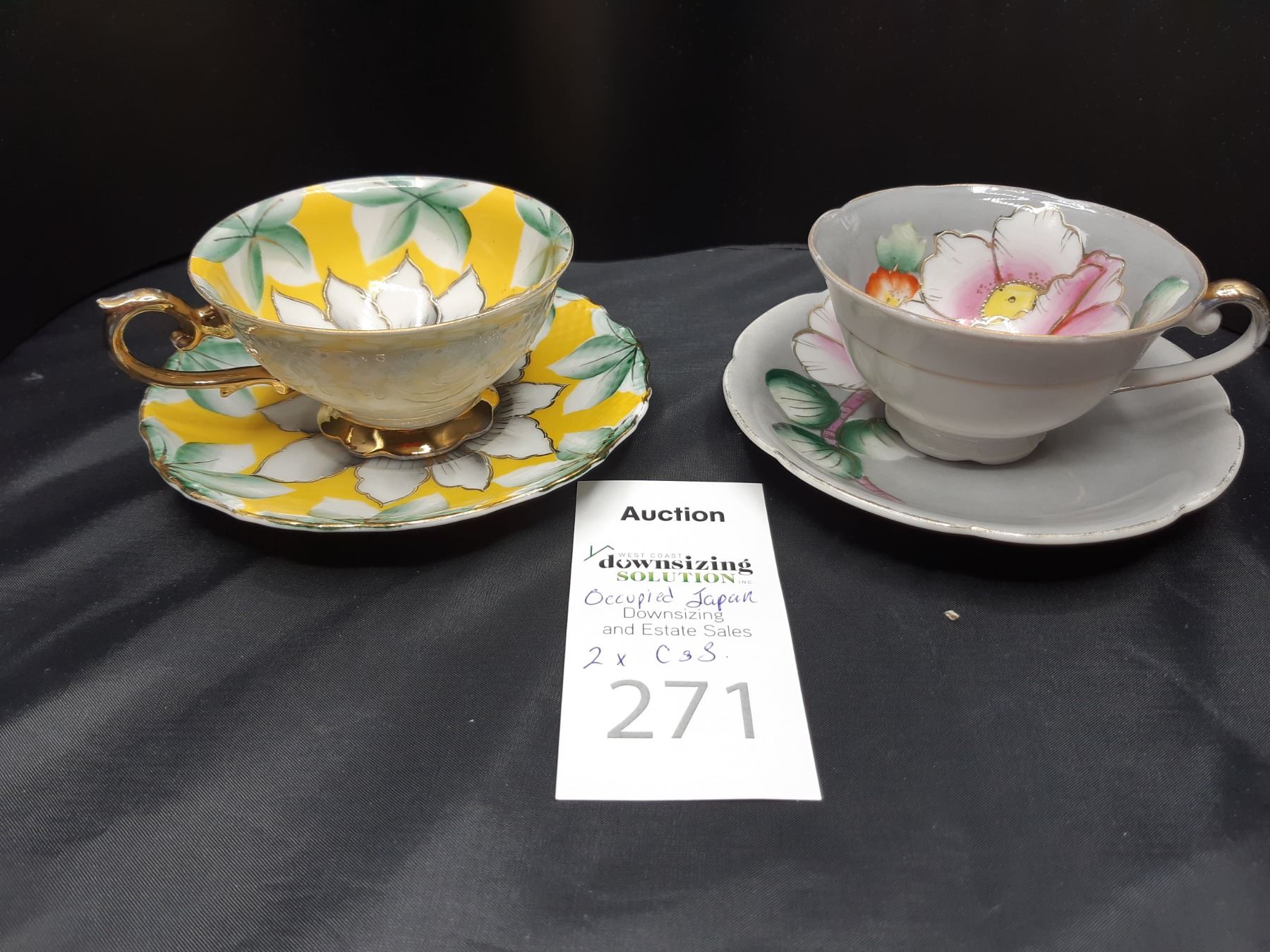Hand painted, Princess teacup & saucer & hand painted teacup and saucer by Trimont made in Occupied Japan. Bring packing materials and pickup at 9 am