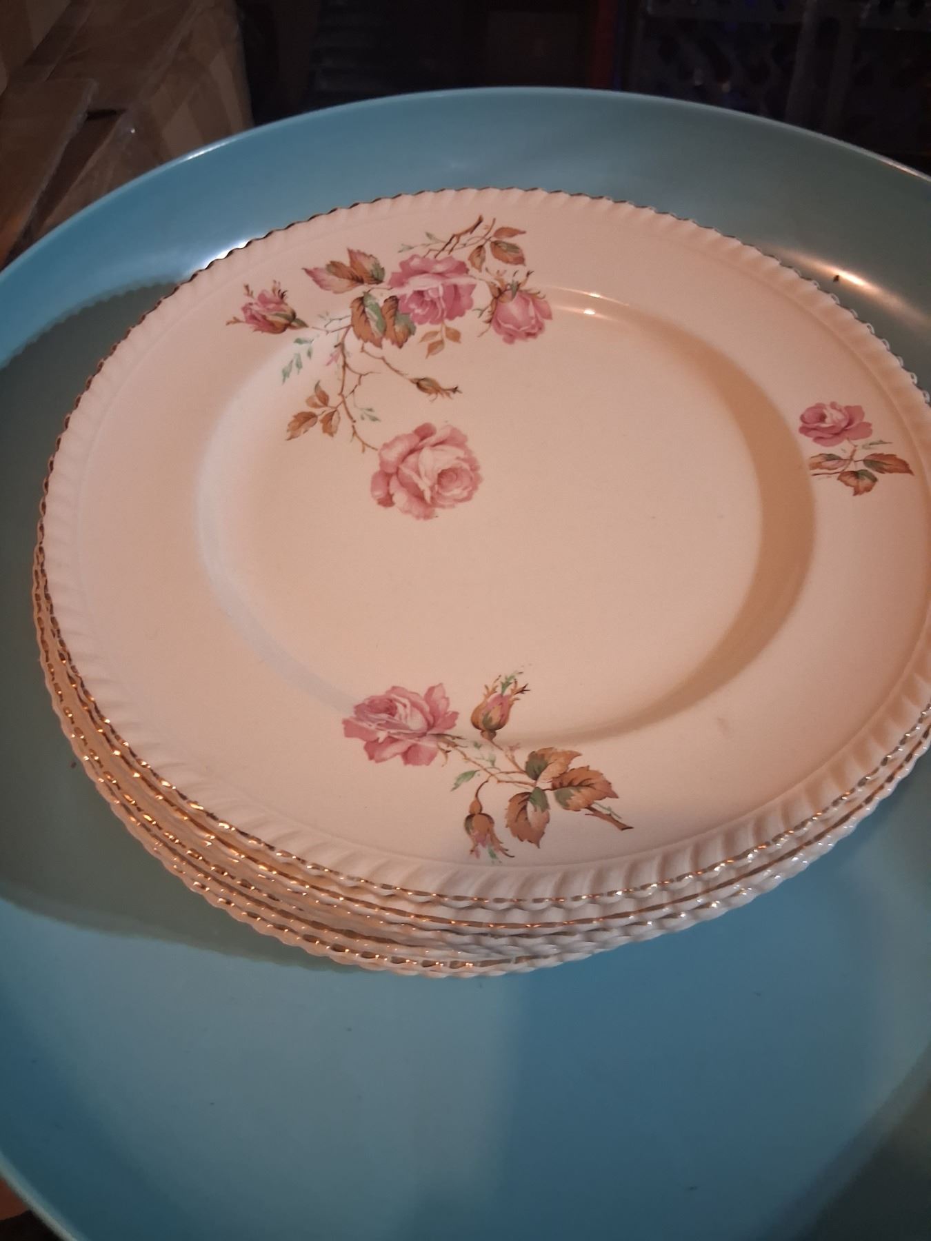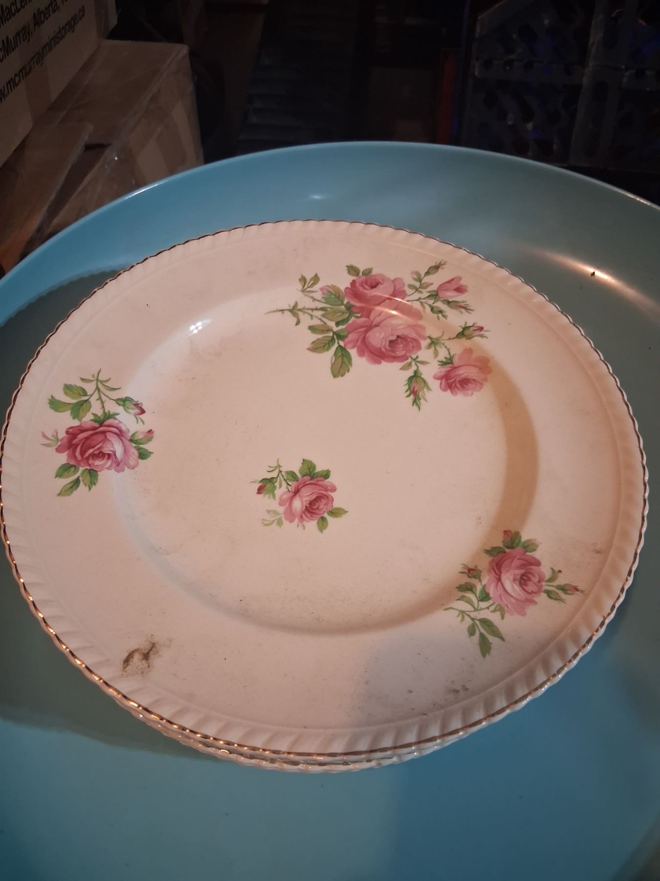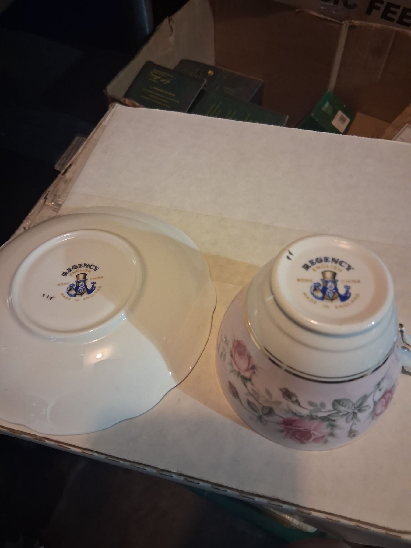 10ea Old English Bone China Plates 2 patterns, 2ea Cup & Saucers Sets, Plus many glass plates see PIc's