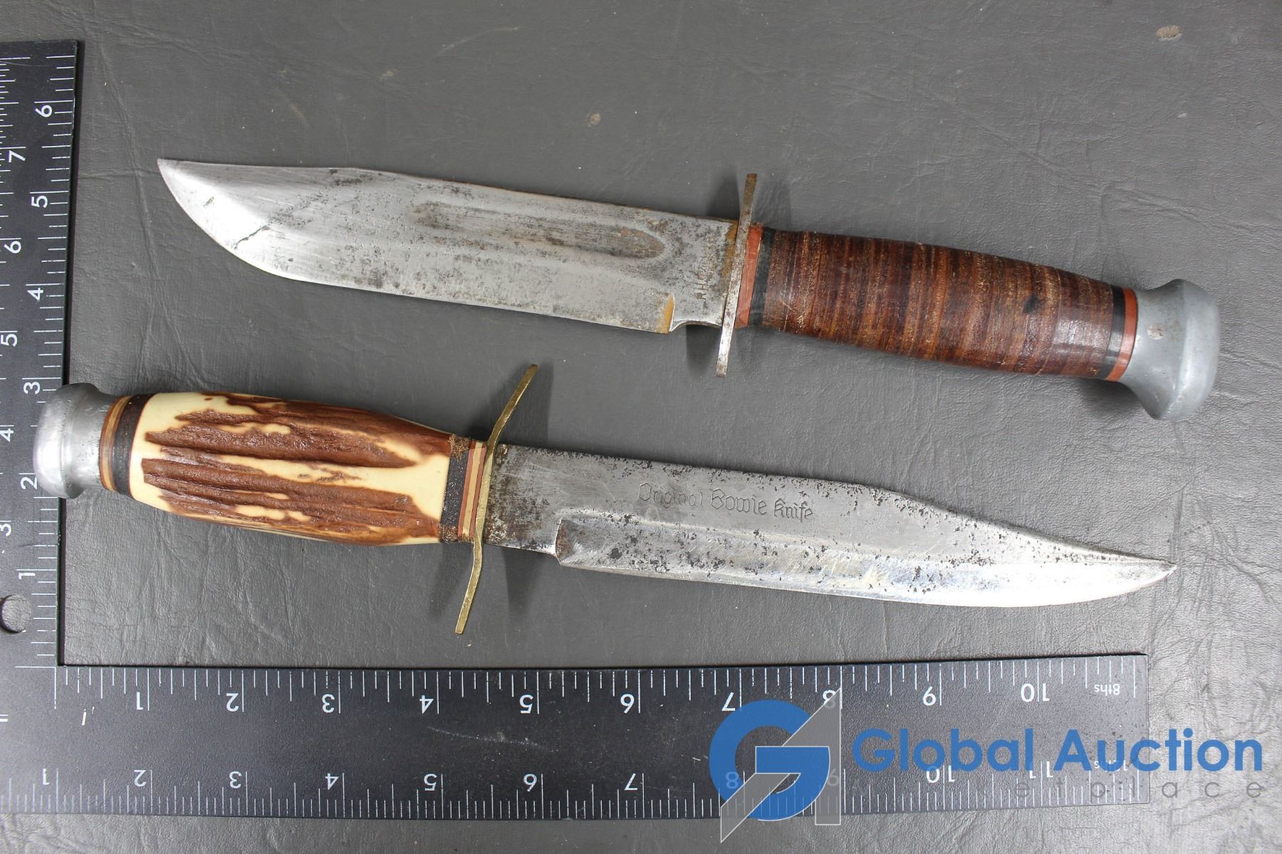 Bowie Knife is 7" Blade; Skinning knife is 6" Blade