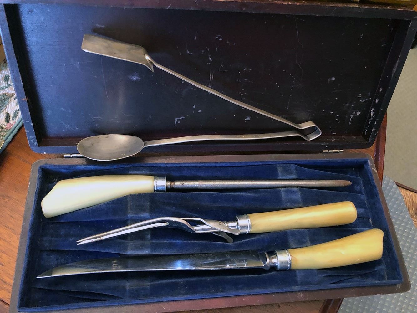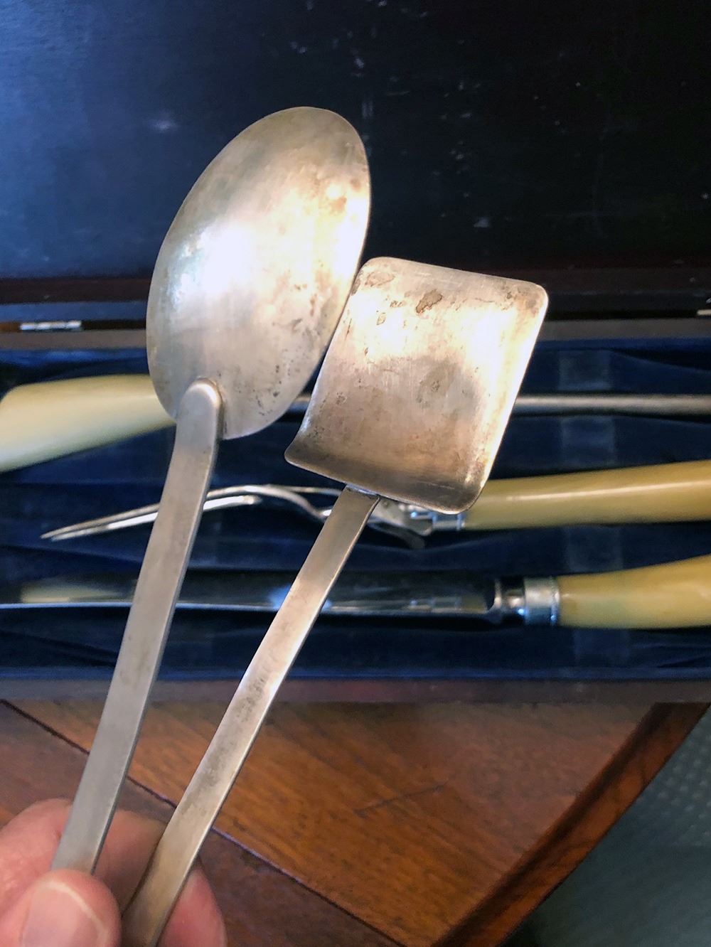 Mexican Sterling .925 Silver and bone handled serving set in fitted case.