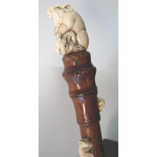 Cane unscrews into two pieces, very fine hand detaileing on each and every one of the rats, with a large " Master" Rat on the top of the cane. There appears not to be any damage of any kind.