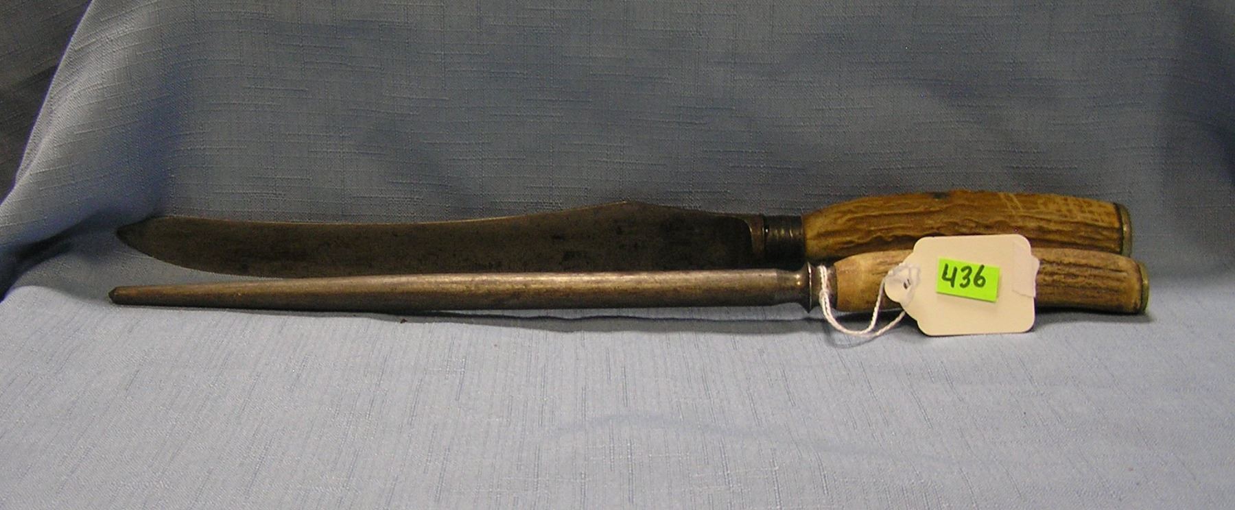 Bone handled carving knife and sharpener set with silver highlights est. value $150.00-$200.00