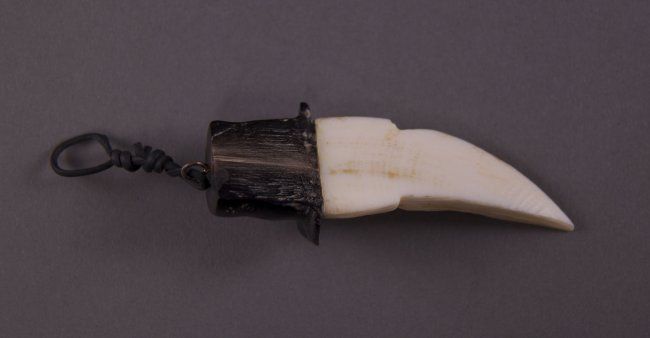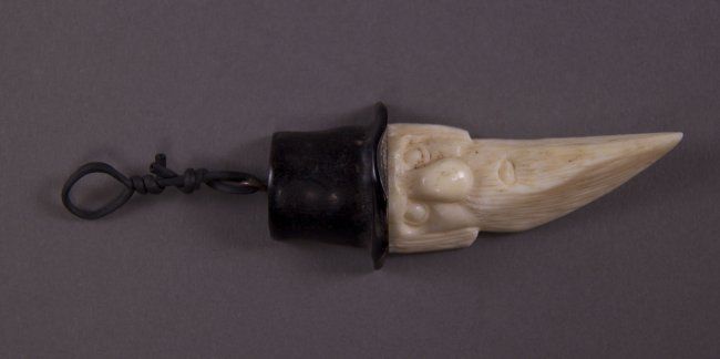 Bone pendant of a bearded man with a top hat.(Size: See last photo for measurement.) Photos are part of the description representing the condition report. Pangaea Auctions urges Bidder's to view all attached photos.