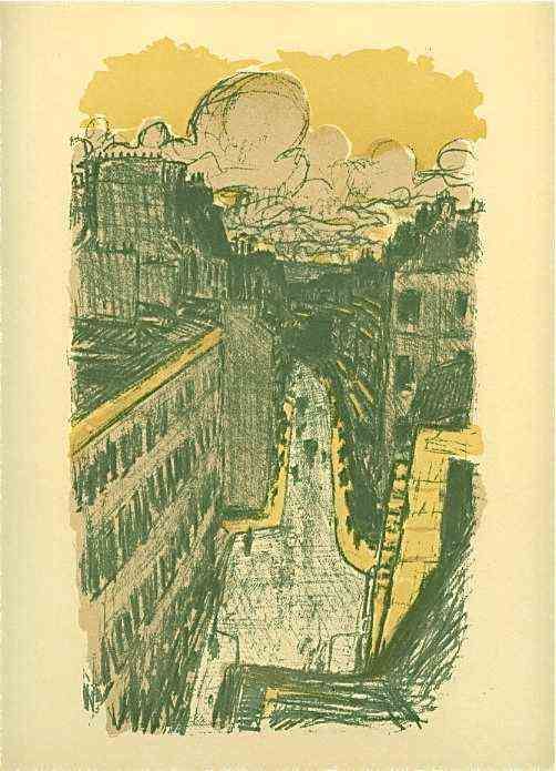 Bonnard Lithograph "Rue Vue D'en Haut" - Multi-Stone Color Lithograph. A Fine Impression On Renage Wove Paper, Printed In Paris In 1952 By The Legendary Mourlot Atelier. Image Size: 8 1/2 X 4 1/2 Inches (220 X 110mm). Sheet Size: 9 1/2 X 12 1/2 Inches (243 X 315mm) - Professionally Framed & Matted - Comes With Certificate - -