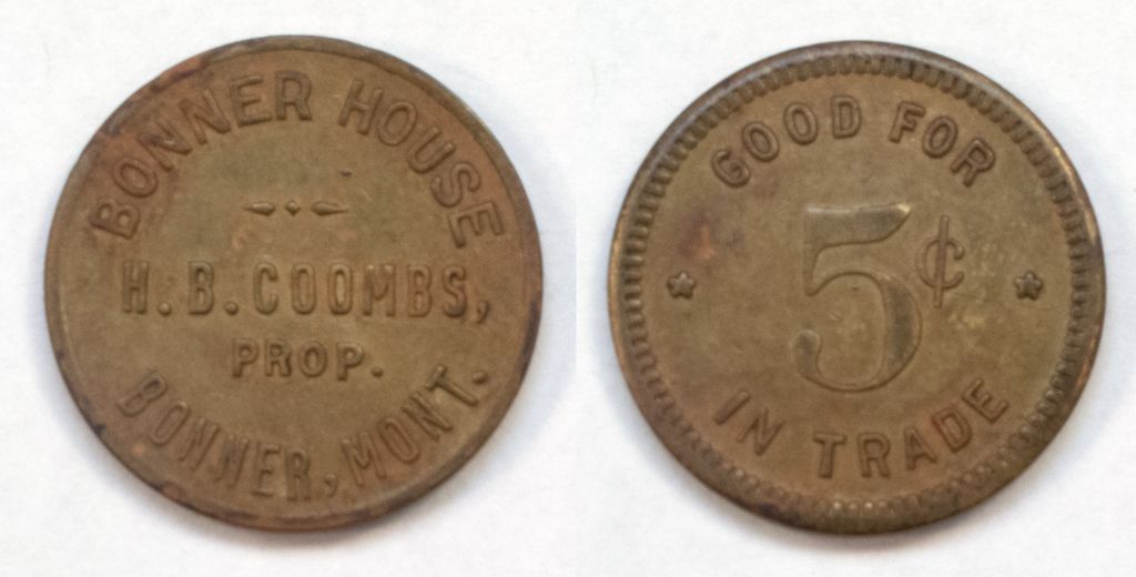 Obv.: Bonner House / H.B. Coombs / Prop. / Bonner, Mont.; rev.: Good For / 5c / In Trade