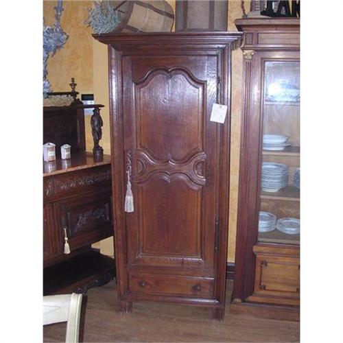 Bonnetiere neo-rustique in oak from the Sarthe region of France. Traditional Sarthoise panel hinged door with drawer on the bottom. Very clean interior with shelves. Some minor imperfection . Please fell free to request more detailed photos. Imported from the Sarthe region of France