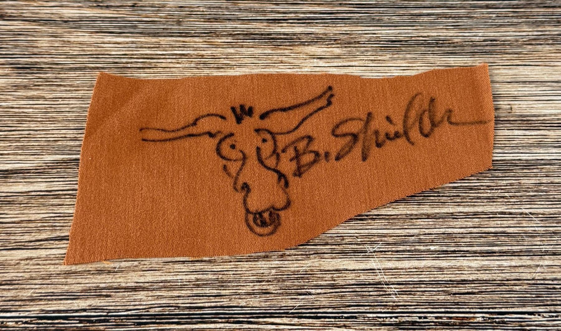 Title is Cow. Pen and Ink on Velvet. 3 1/4" by 6 3/4". Bonnie Shields (Born 1934) is known for Painting.