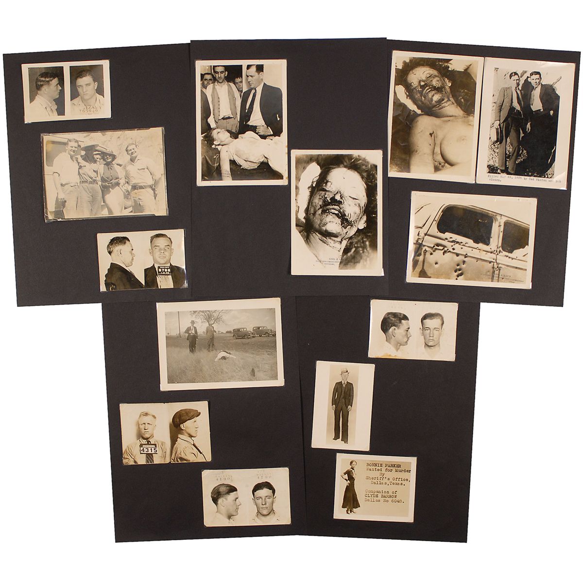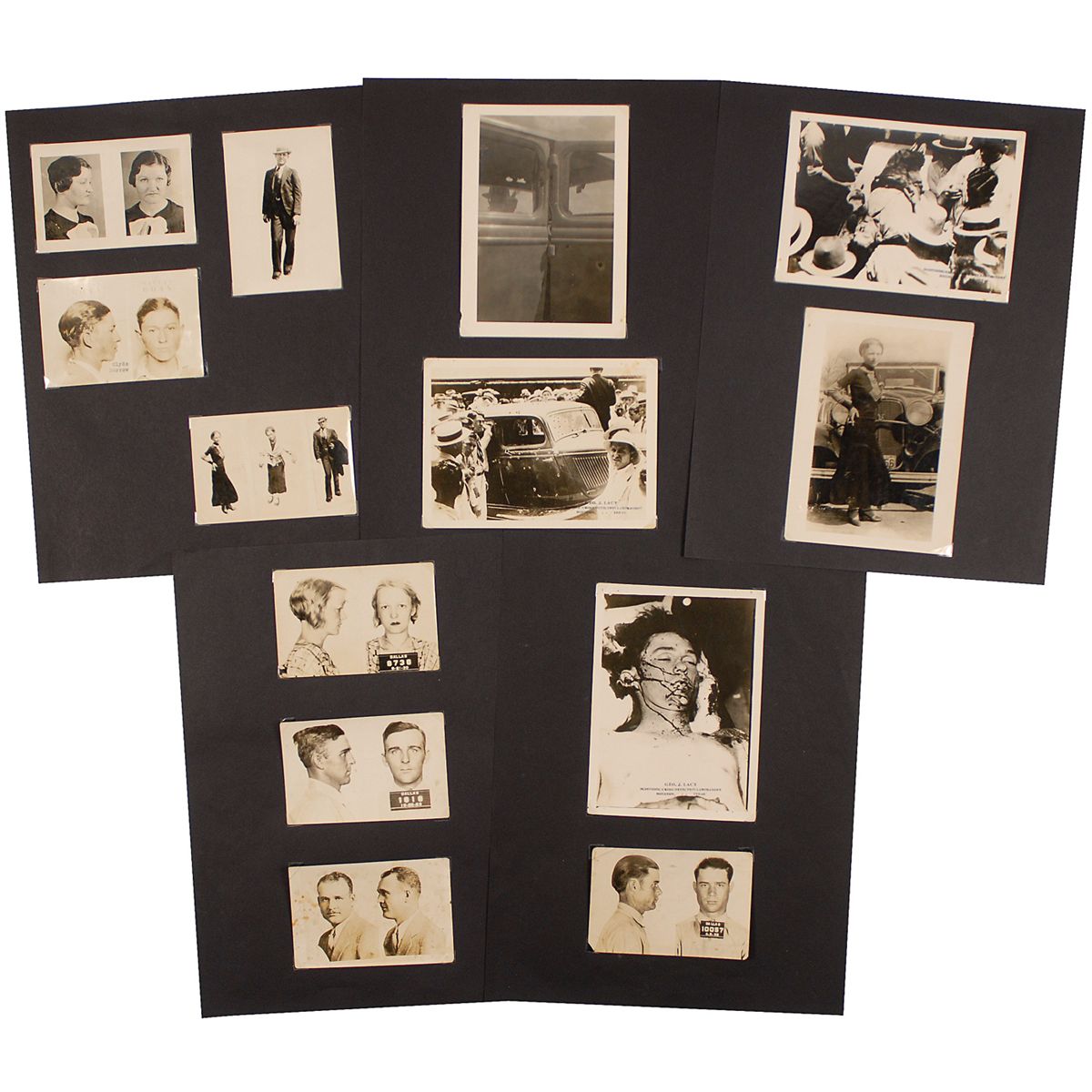 Included in this lot are one of those .45 caliber bullets, and three .38 caliber bullets (these bullets have solid and credible oral history associating them to Bonnie and Clyde as shown on the TV show). Also included are all 27 of the first generation photographs that originally accompanied the bullets. Aside from having one of the actual guns used by Bonnie and Clyde, this bullet, fired from one of the guns found in their car at the time of their death, represents a direct collectible link relating to the legendary outlaw duo. Nearly equal in significance are the photographs themselves. First generation photographs of Bonnie and Clyde are extremely desirable. Ten of the images picture Bonnie and/or Clyde, including five graphic death shots, three of Bonnie and two of Clyde. The others include members of their gang as well as shots of their bullet-riddled car. Related papers provided by the show's producers, documenting their findings are also included.