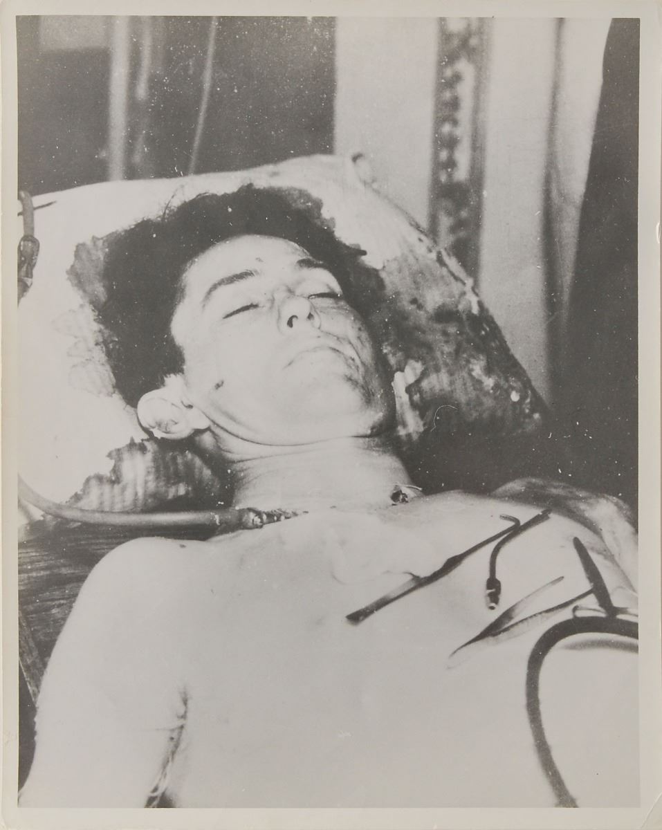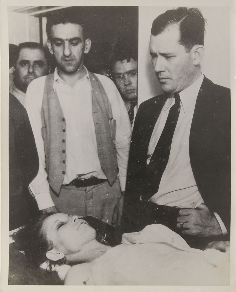 Pair of vintage second-generation glossy 8 x 10 photos of Bonnie and Clyde after the duo were killed. In overall fine condition. Accompanied by a letter of provenance from a previous owner, stating that these photos originally came from an uncle who owned a liquor store in Dallas frequented by various unsavory characters, Bonnie and Clyde included.