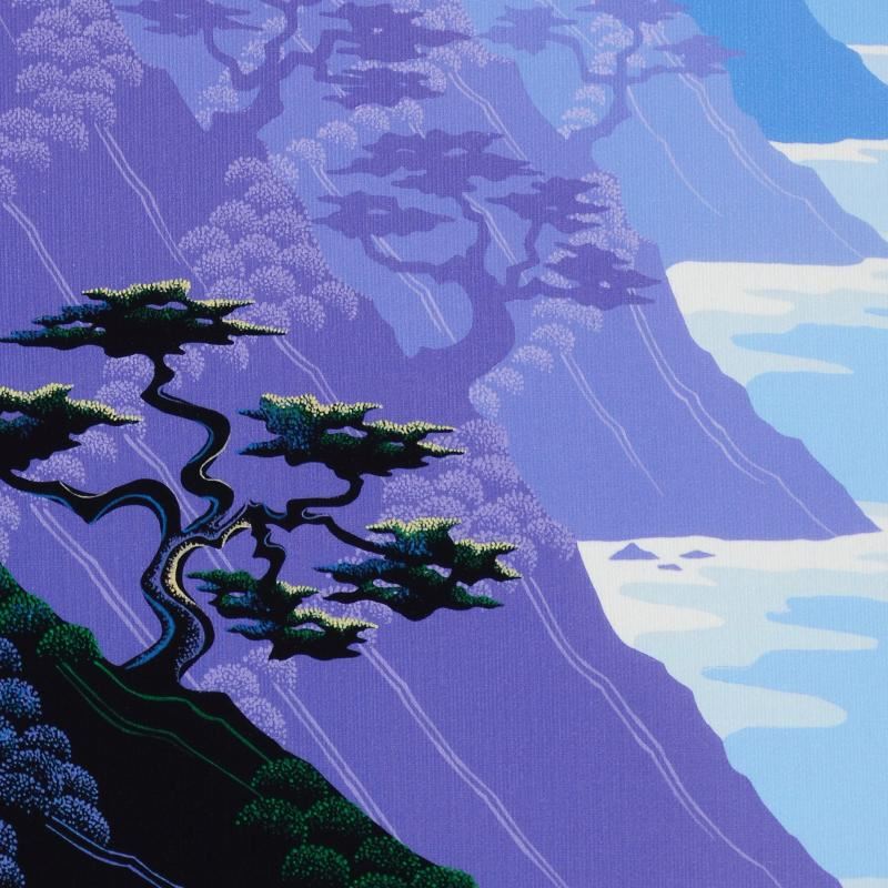 Larissa Holt, a student of distinguished artist Eyvind Earle(1916-2000), uses bold colors and breathtaking scenery to create images of Nature in her own unique style. "Bonsai" is a limited edition giclee on stretched canvas by Holt, numbered and bearing Holt's authorized signature. This piece comes gallery wrapped. Includes Certificate of Authenticity! Measures approx. 10" x 12.5" x 1.5" (image).