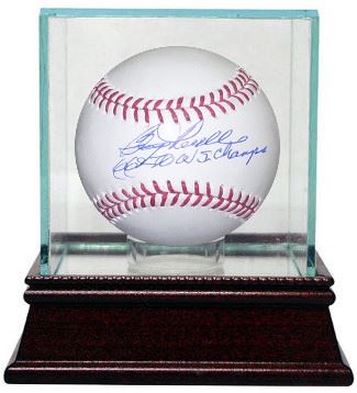 Boog Powell played for the World Series Champion Orioles in 1966 and 1970, the American League Champion Orioles in 1966, 1969, 1970 and 1971, and the Ameican League East Division Champion Orioles in 1969, 1970, 1971, 1973 and 1974. The 4-time All-Star won the American League's Most Valuable Player award in 1970 and in 1964 led the American League in slugging percentage with .606. He batted left-handed and threw right-handed, playing first base, outfield and designated hitter. Boog Powell has hand autographed this Official Major League Baseball with 66 & 70 WS Champs inscription. MAB Hologram and Certificate of Authenticity from Athlon Sports. Glass Display Case shown IS included