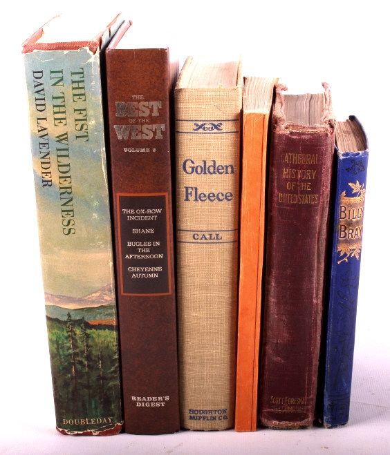This lot features a collection of 6 books. They are: "The Cathedral History of the United States", "Vigilantes of Montana", "Golden Fleece", "Reader's Digest, The Best of the West Vol. 2", "The Fist in the Wilderness", and "Billy Bray". All the books are in good condition.