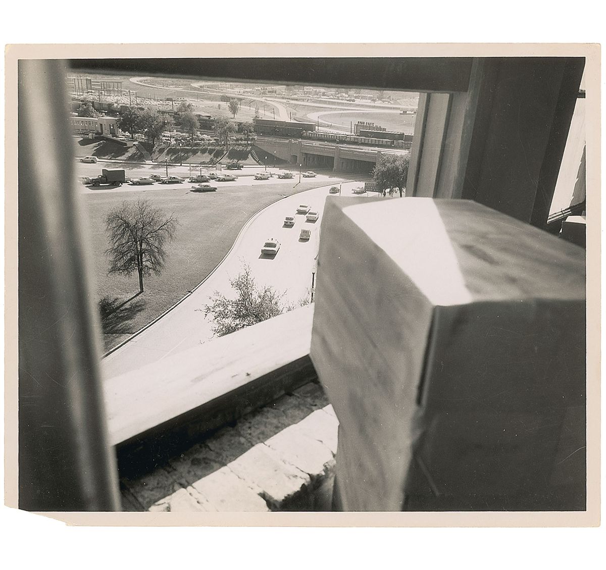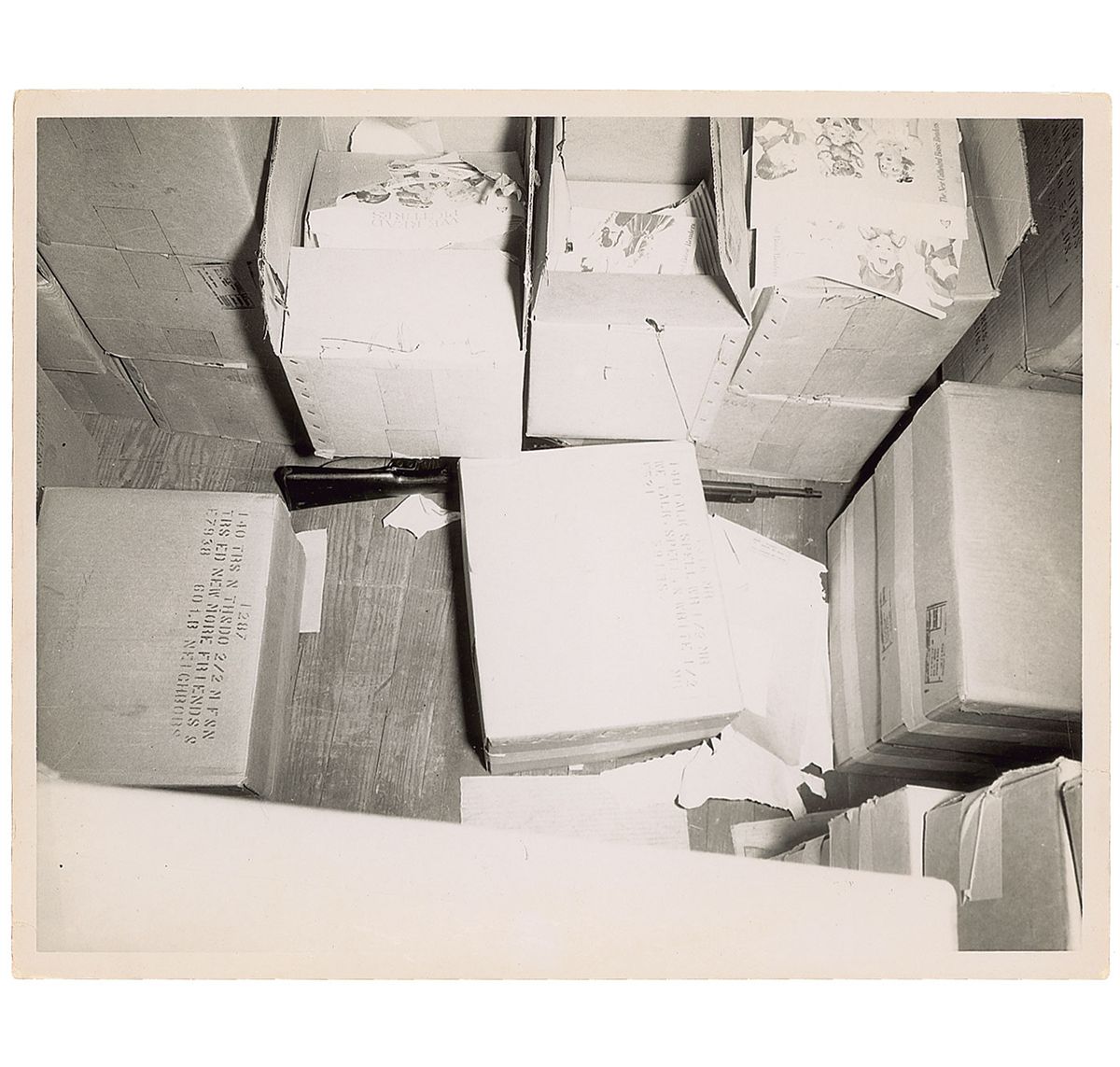Within fifteen minutes of the shooting, Dallas Police broadcast a description of their suspect—a man seen with a rifle in a sixth floor window of the Texas School Book Depository—to all units. When two employees of the Depository, who had been watching the motorcade from windows at the southeast corner of the fifth floor, confirmed that they heard three gunshots above their heads, along with sounds of a bolt-action rifle and cartridges dropping on the floor above them, police sealed the building and began their investigation of what was deemed the crime scene. ‘Primarily, Studebaker and I were taking photos and checking for prints on the sixth floor,’ writes Carl Day, a lieutenant in the newly formed Crime Lab within the Identification Bureau of the Dallas Police Department, in his account of that afternoon. Checking for prints on boxes, collecting evidence to bring to the lab for testing, analyzing views and checking angles from the window that Oswald allegedly shot through. This remarkable collection of original photos offers an inside look at the Depository that afternoon, with key pieces of the story—including the rifle, shell casings, and palm-printed box—as seen by the Dallas Police.