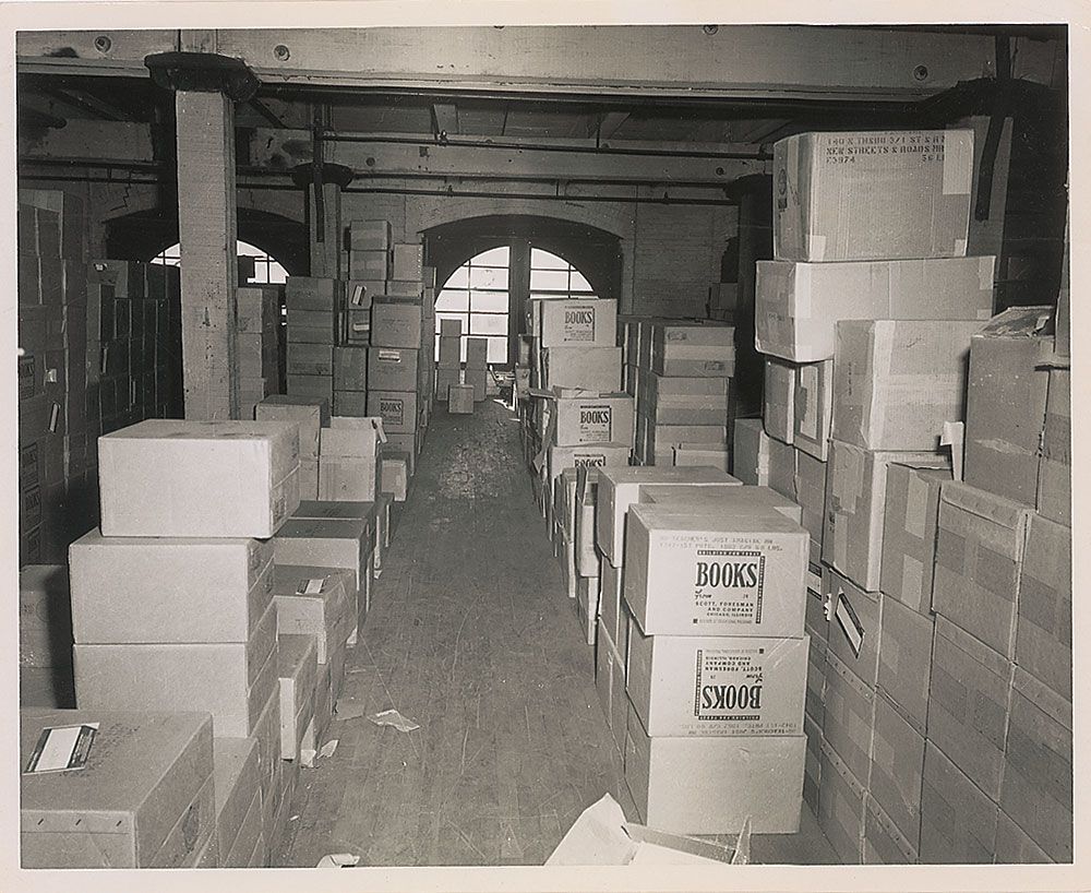 Collection of 31 original glossy 10 x 8 Dallas Police Department crime scene photos of the interior of the Texas School Book Depository, taken shortly after the assassination took place. All but one bear red ink stamps on the reverse that read, “This photograph made and developed by Bureau of Identification, Police Department, Dallas Texas,” and many are briefly described on the reverse in an unknown hand. Photos primarily depict the sixth floor of the building from different angles, including close-ups of the window area from which the shot was fired, as well as the view from the ‘sniper’s perch’ looking down onto Elm Street in Dealey Plaza. Also includes numerous photos of evidence gathered at the scene, such as shell casings, a box with a handprint on it, the rifle, and the location where the gun wrapper was found. Other photos depict different floors, hallways, and rooms, including the lunchroom. In overall fine condition.