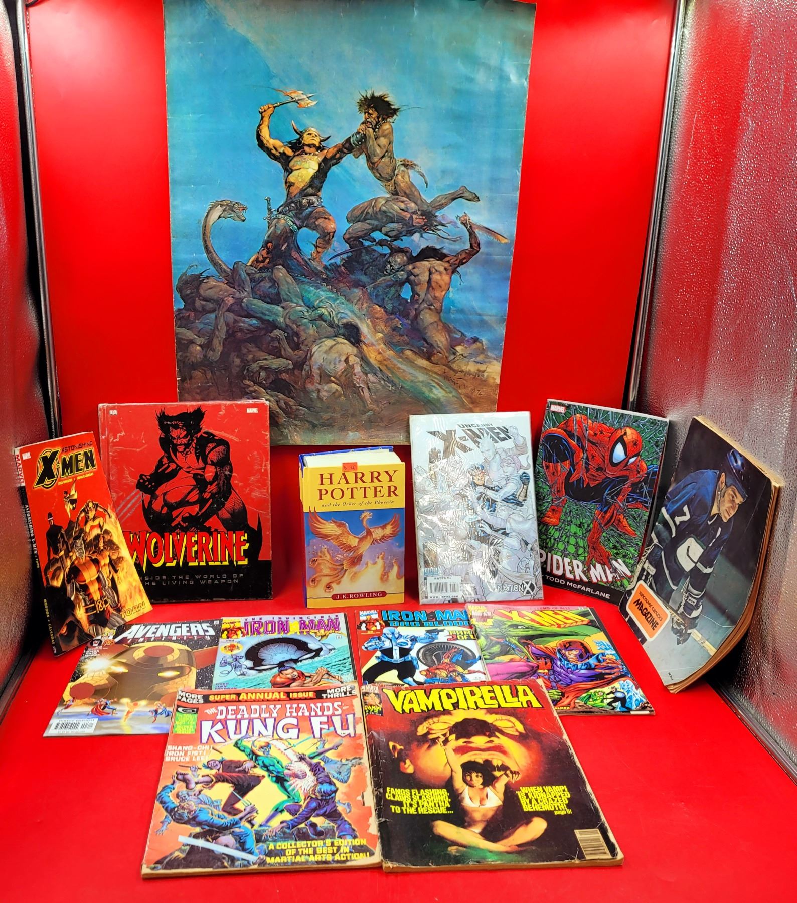 Book & Graphic Novel/Comic Lot w/ 1st Edition Harry Potter, Vampirella Comic, Wolverine Book, & More