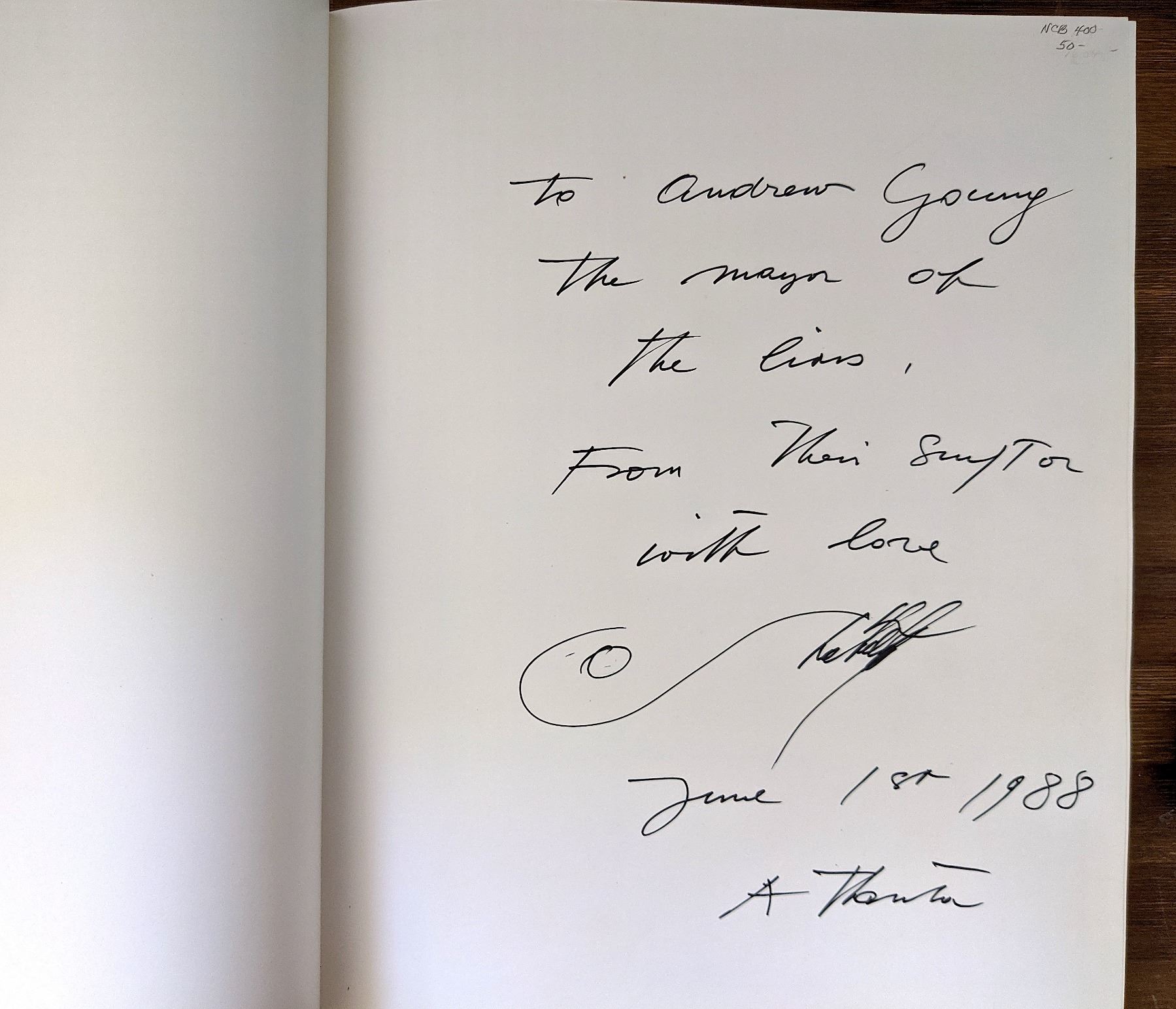 Olivier Streabelle Belgian sculptor signed by him to Andrew Young, presubaly the former mayor of Atlanta and First African - American US Ambassador to the United Nations.