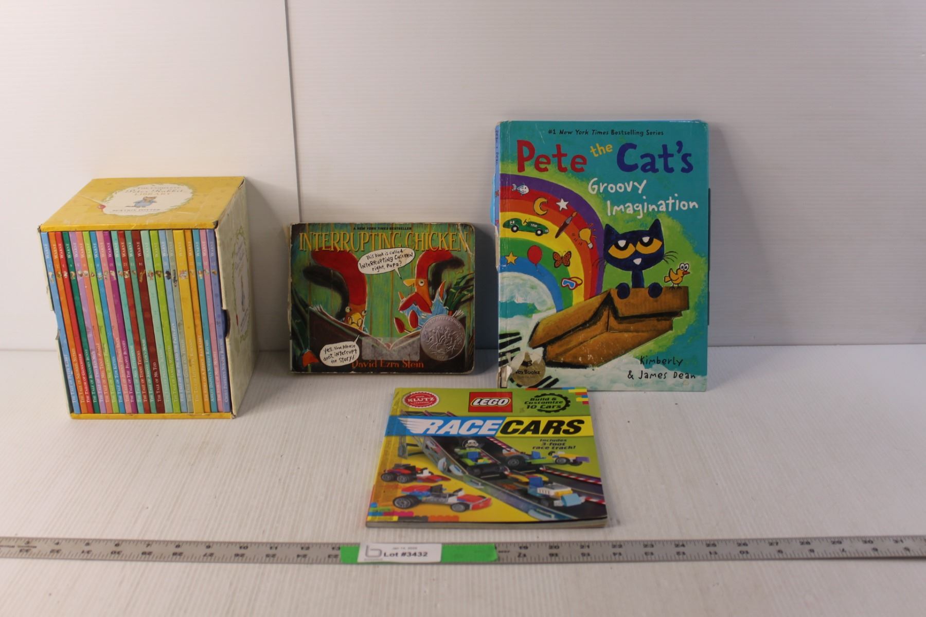 Book Lot- Peter Rabbit Library Collection, Pete the Cat, Interrupting Chicken, Lego Race Cars