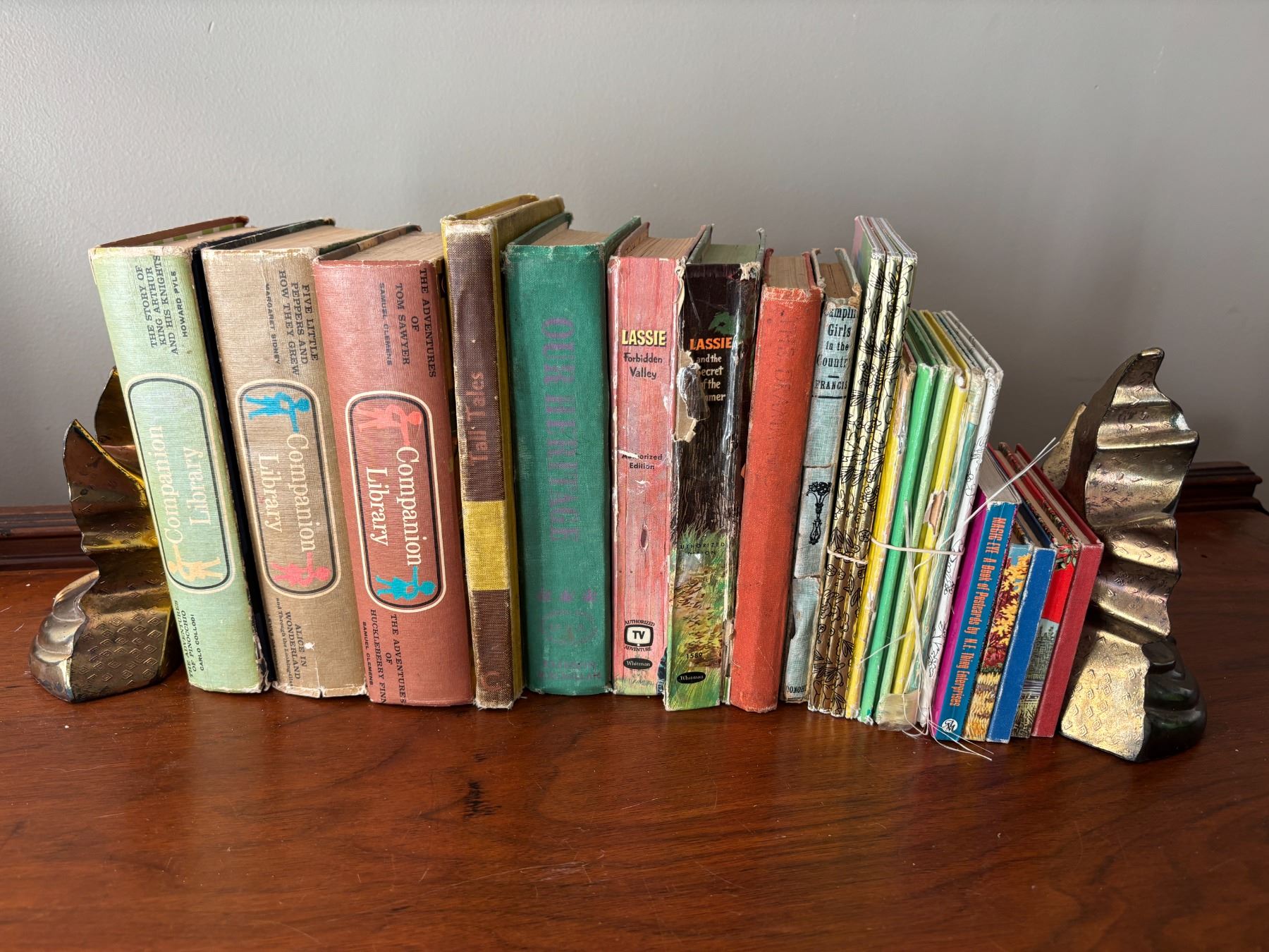 Misc books, hard covers & soft with bookends to complete the collection