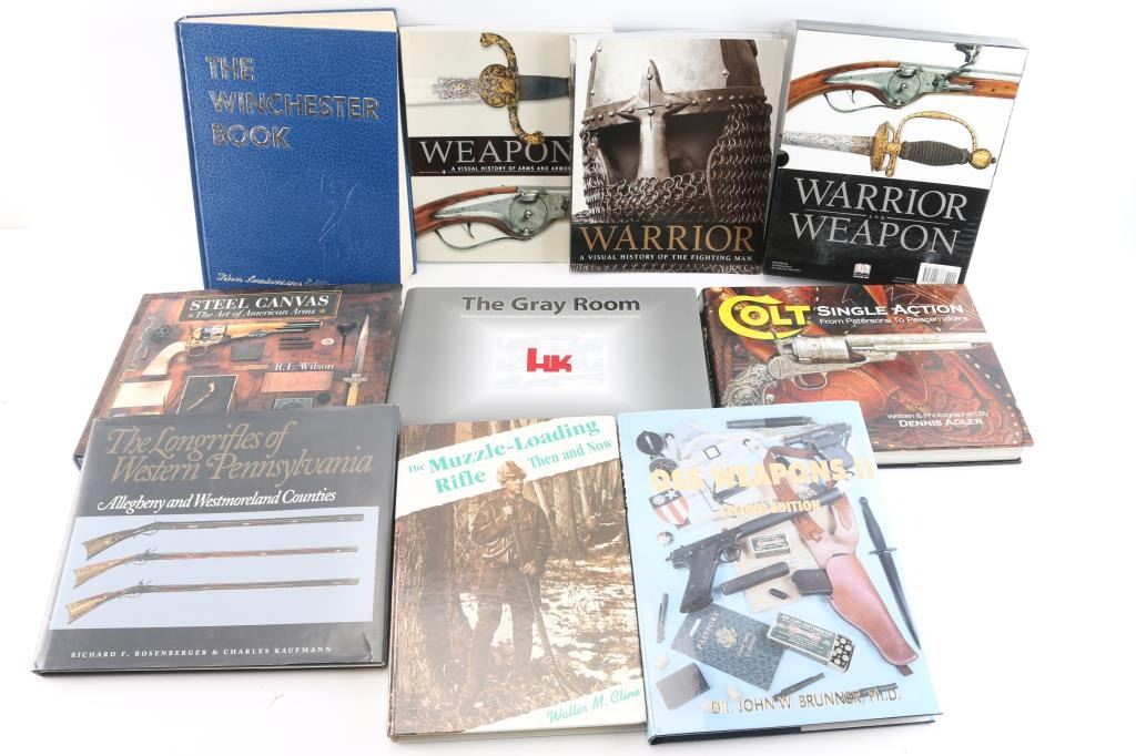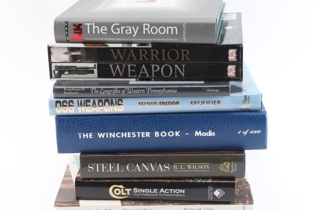 Winchester 1 of 1000 book, HK The Gray Room,OSS WEAPONS, Steel Canvas, Colt Single Action ,and others.