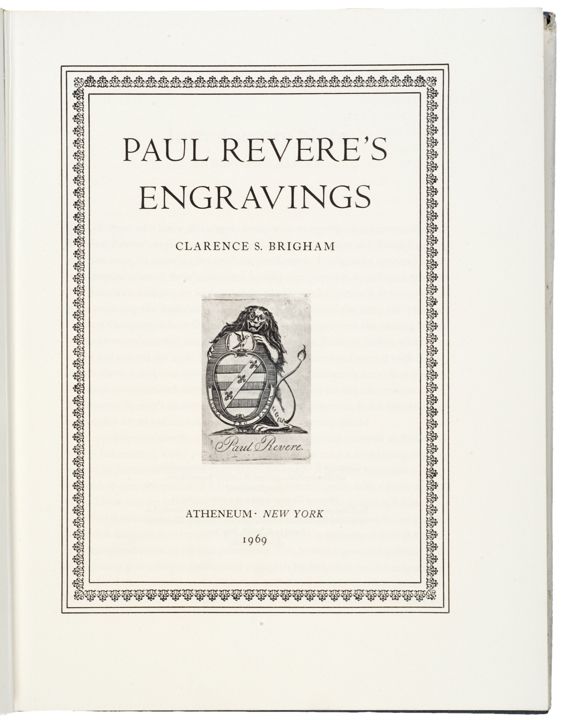 (PAUL REVERE). “PAUL REVERE’S ENGRAVINGS,” by Clarence S. Brigham, 1969 Edition, Choice About Extremely Fine.