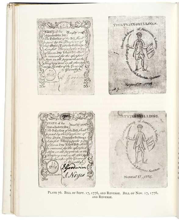 Original full-color dust-jacket cover. The masterful and massive 262 page reference work and the “Bible” for collectors of Paul Revere’s engravings. First printed by the American Antiquarian Society in 1954, this edition has been further revised and refined. Any and all known existing engravings by Revere are shown, many being in full color and including some larger fold-outs. Dust jacket has a repaired (with tape) 1.5 inch tear. The history of Revere and his engravings is magnificently detailed from the print of The Boston Massacre to his engraved Colonial Paper Money, and so much more! We have previously sold this scarce edition at $250 hammer. Now well out of print for many, many decades and a very important historical work, always in great demand.