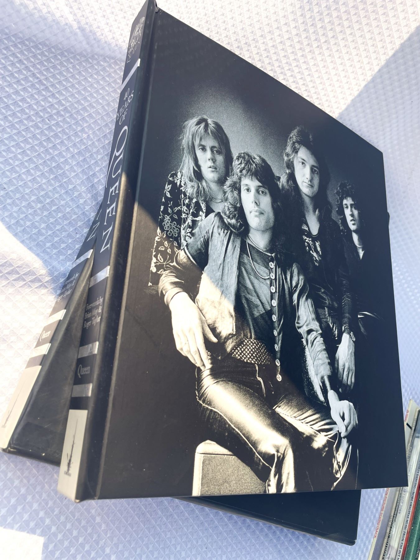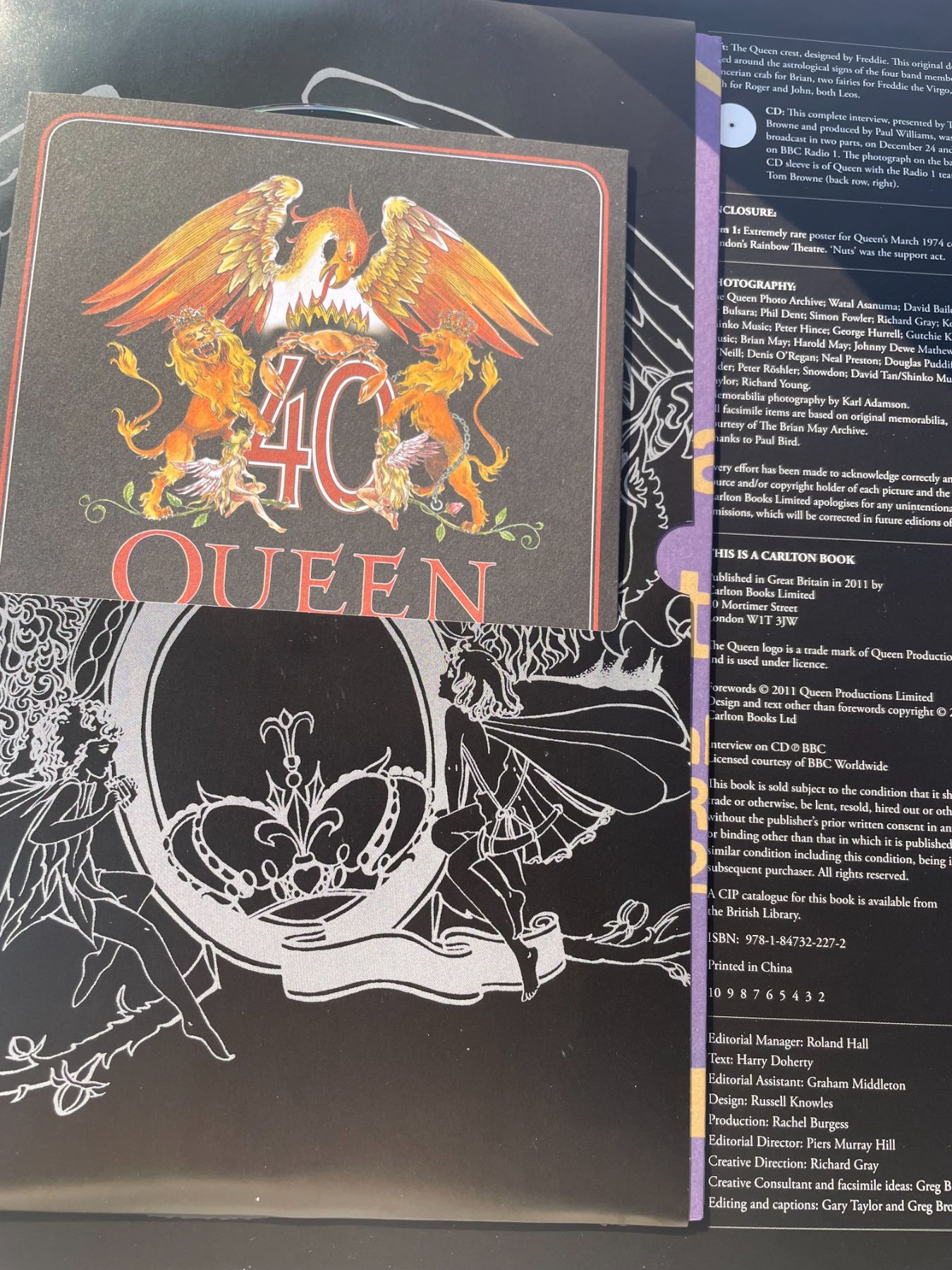 The photograph on the back of the CD sleeve is of Queen with Radio 1 team, including Tom Browne.