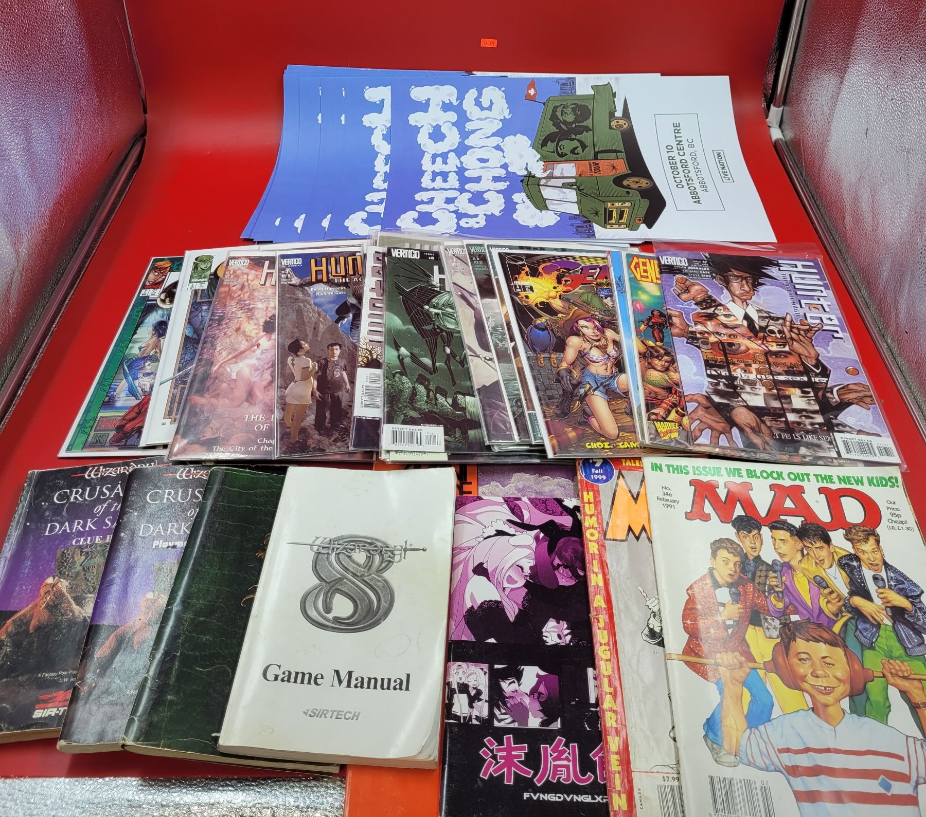 Book & Poster Lot w/ Cheech & Chong Posters, Vertigo Comics, Wizardry Manuals, & More