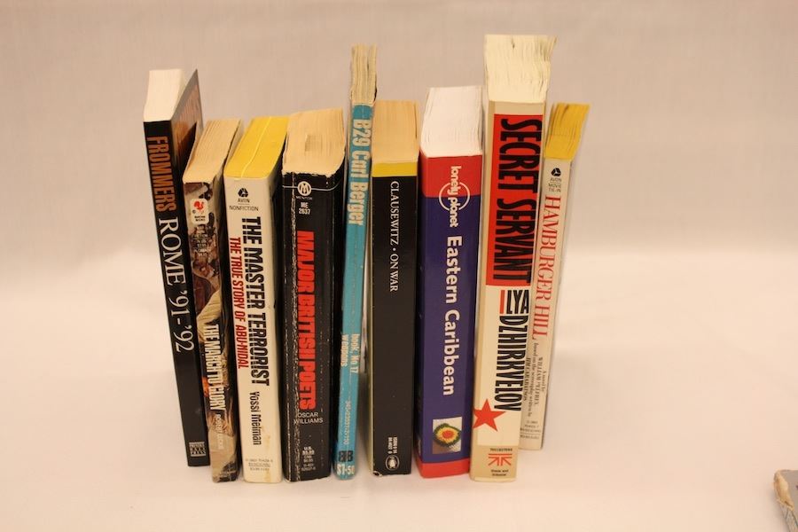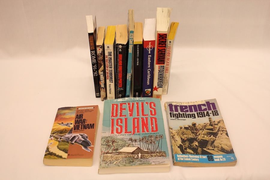 Book-Secret Servant - Note pg 40-41Book-Devils Island Colony of the Damned - Underlining pg 56, 68, 115Book-On War by Carl Von Clausewitz Book-B29 The Superfortress Book-Major British Poets, underline pg 391Book-Hamburger Hill Book-The Master Terrorist: The Ture Story of Abu-Nid Book-Frommers Rome 91-92 Book-The March to Glory Book-Eastern Carribean Book-Air War Vietnam Book-Trench Fighting 1914-1918. ** Personal Asset Formerly Belonging to James "Whitey" Bulger or Catherine Greig. Item(s) must be picked up and removed from the Boston Convention & Exhibition Center by 5:00 P.M. EST on Sunday, June 26th.