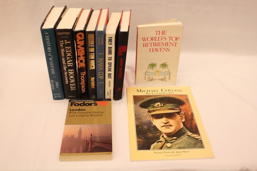 Book-They Dare to Speak Out Book-Riddle of the Rock Book-Mafia Cop Book-J Edgar Hoover Book-Gumshoe Book-A History of Warfare Book-Michael Collins Illustrated Life Book-Worlds Top Retirement Havens Book-Mob Father Book-Fodors 1990 London Travel Guide. ** Personal Asset Formerly Belonging to James "Whitey" Bulger or Catherine Greig. Item(s) must be picked up and removed from the Boston Convention & Exhibition Center by 5:00 P.M. EST on Sunday, June 26th.