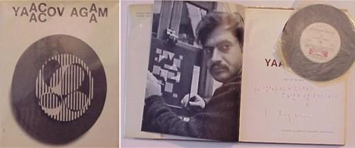 YAAKOV AGAM, 1962, Editions DuGriffon, Switzerland, hardbound, autographed in pen, dust jacket worn, 128 pages in English, complete with a 45prm records of music by Agam. $100/200