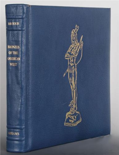 Leather Bound Limited Edition, Bronzes of the American West by Patricia Broder together with C.M. Russell’s bronze,"Indian Head". Bronze sculpture. 1 ¼” x 4”. # 22/262. Slight scuff to book binding. (est $2,000-2,500).