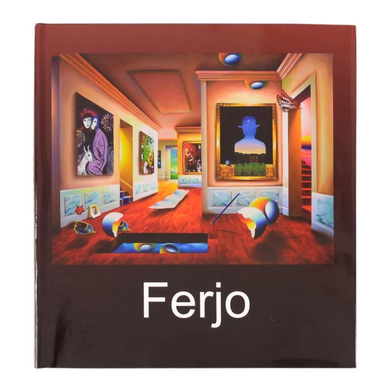 "The World of Ferjo" is a fine art coffee table book featuring the art of Ferjo, the "master of perspective." There are very minor scuff marks to the book jacket. Measures approx. 12" x 13" (book dimensions).