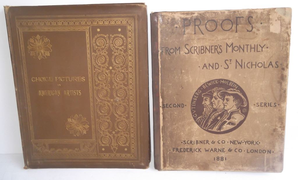 2 piece lot including Choice pictures by American artists book; 1881 proofs from Scribner's monthly and St. Nicholas folio of 50 prints. Stained; tears; foxing.