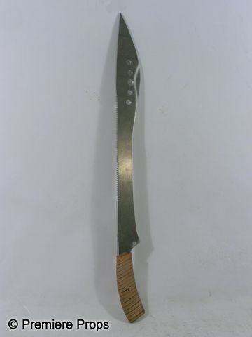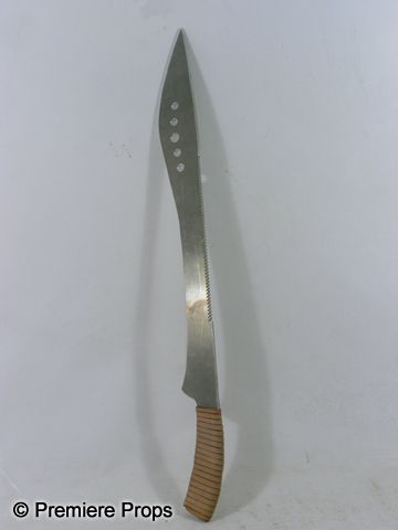 Eli's (Denzel Washington) silver with 5 holes, metal sword with a perferated outside and smooth inside. The handle is tied light brown rubber robe with foam padding for cushion. (Possibly a prototype or used for training.) (approx. 30" long.)
